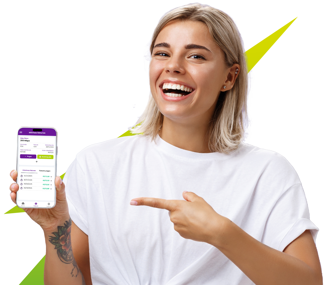Tenha o controle na palma da mão! Segunda via de boletos, pagamento por pix, aberturas de chamados e muito mais.